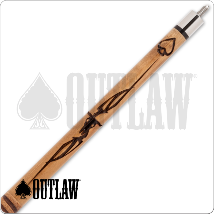 Rekindle the rowdy pioneer spirit of the Wild West with this new Outlaw cue! This new cue is engraved on both the forearm and the sleeve with crisp cattle skull designs backed with striking tribal patterns. As with all of the Outlaw cues, this one also has a leather wrap; the wrap on this particular cue is unstained and comes with a natural, light brown coloration, giving it that distinct old-school feel.